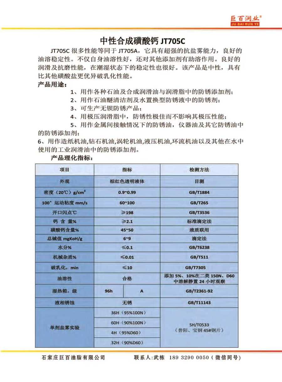 中性合成磺酸钙JT705C