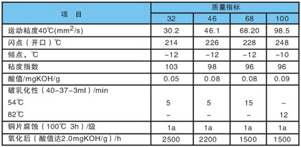良好的防锈性和防腐性,保护设备,避免锈蚀;极好的抗乳化性,能迅速与接触的水分离,保持足够的油膜强度;具有良好的氧化安定性,较好的完全释放性、抗泡沫性能和抗乳化性,油品使用寿命长。